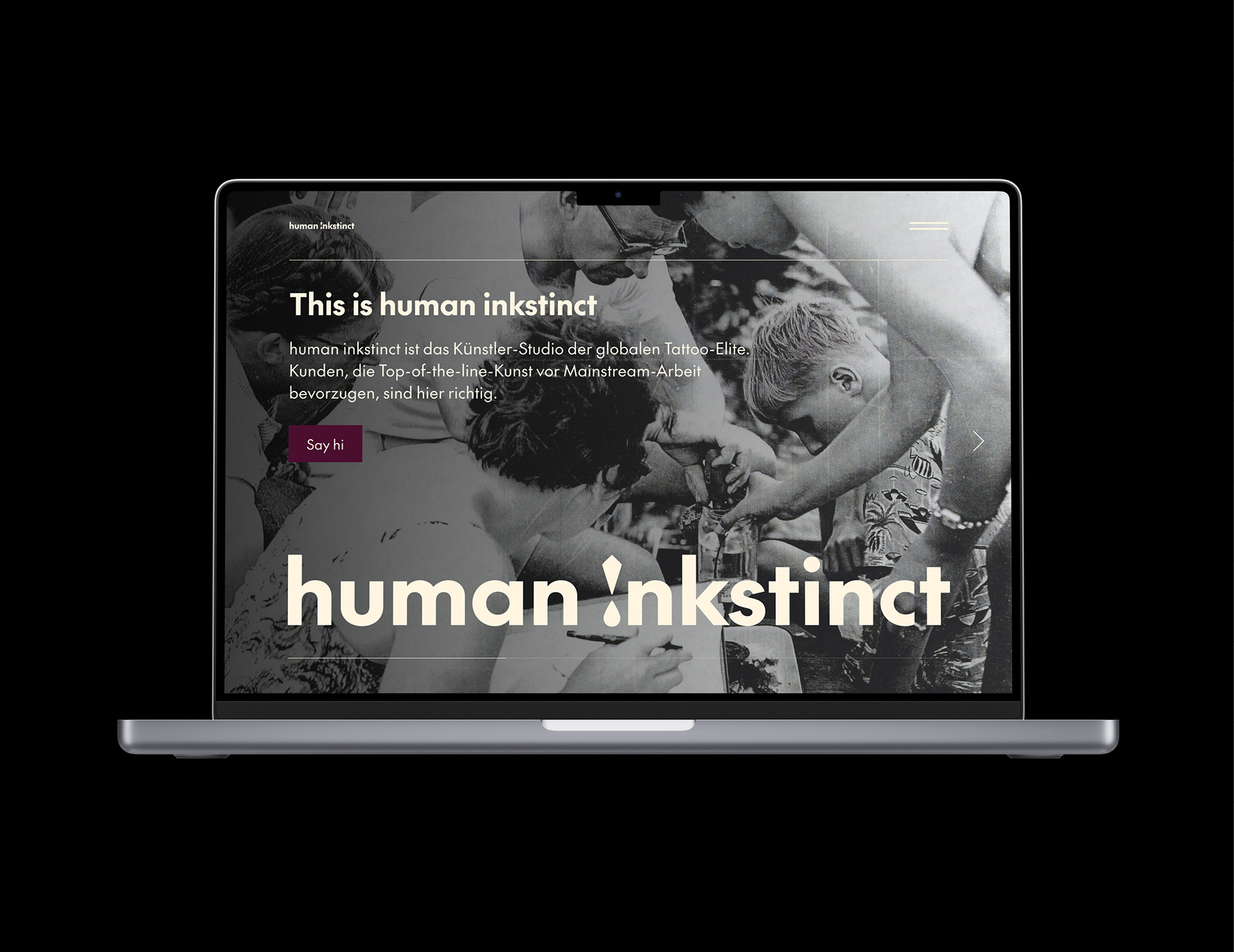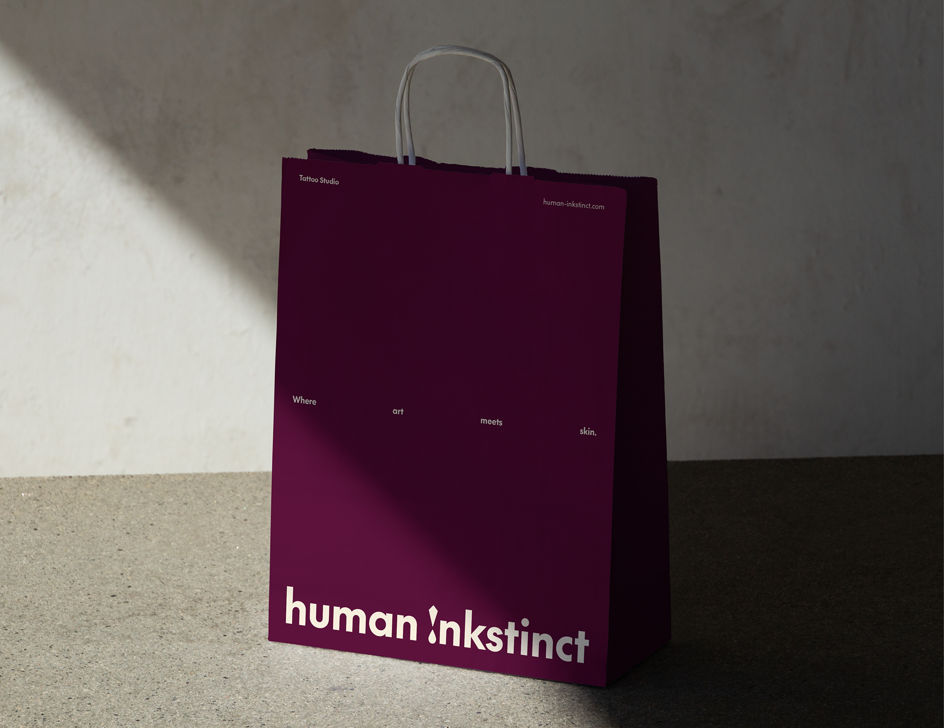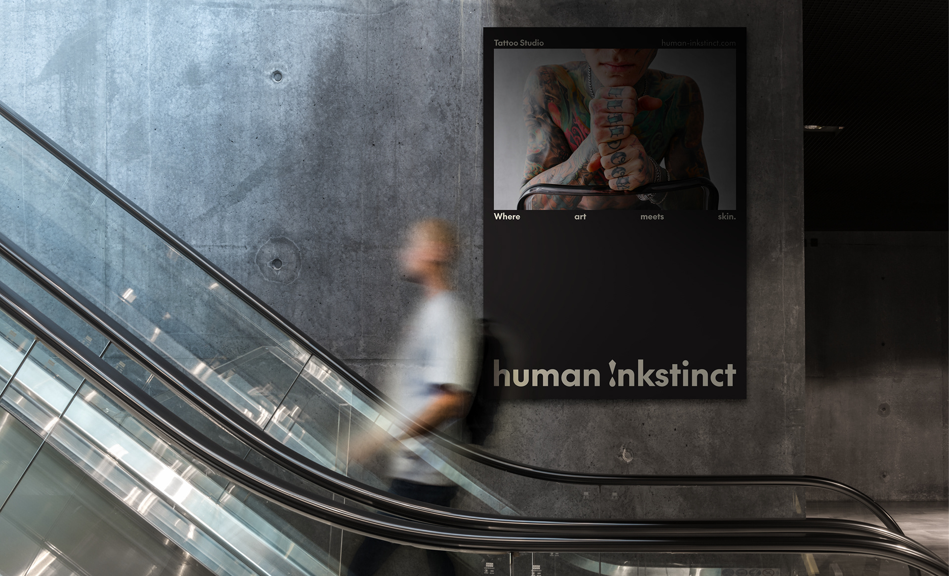 The visual identity for human inkstinct, a tattoo studio, embodies a luxurious, minimalist, and contemporary aesthetic.