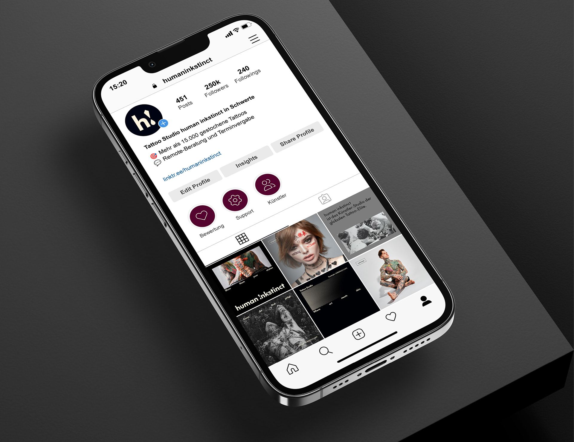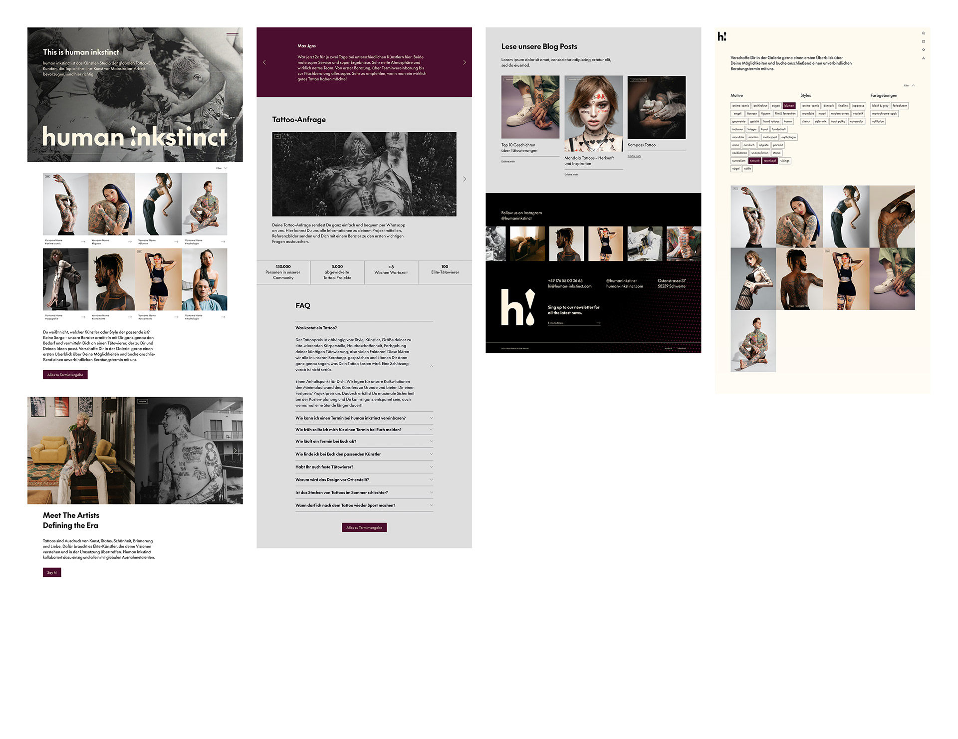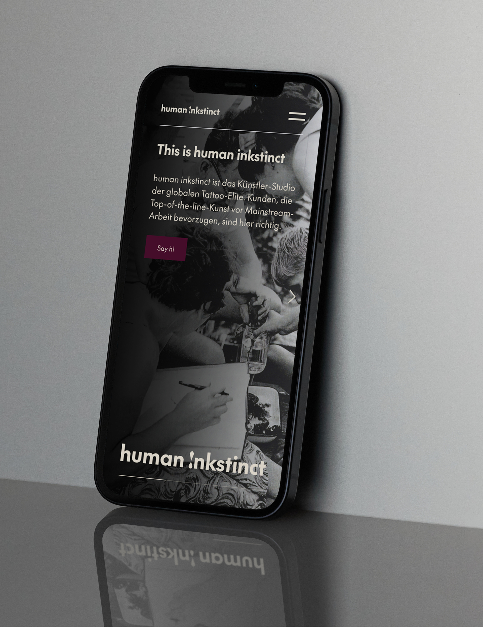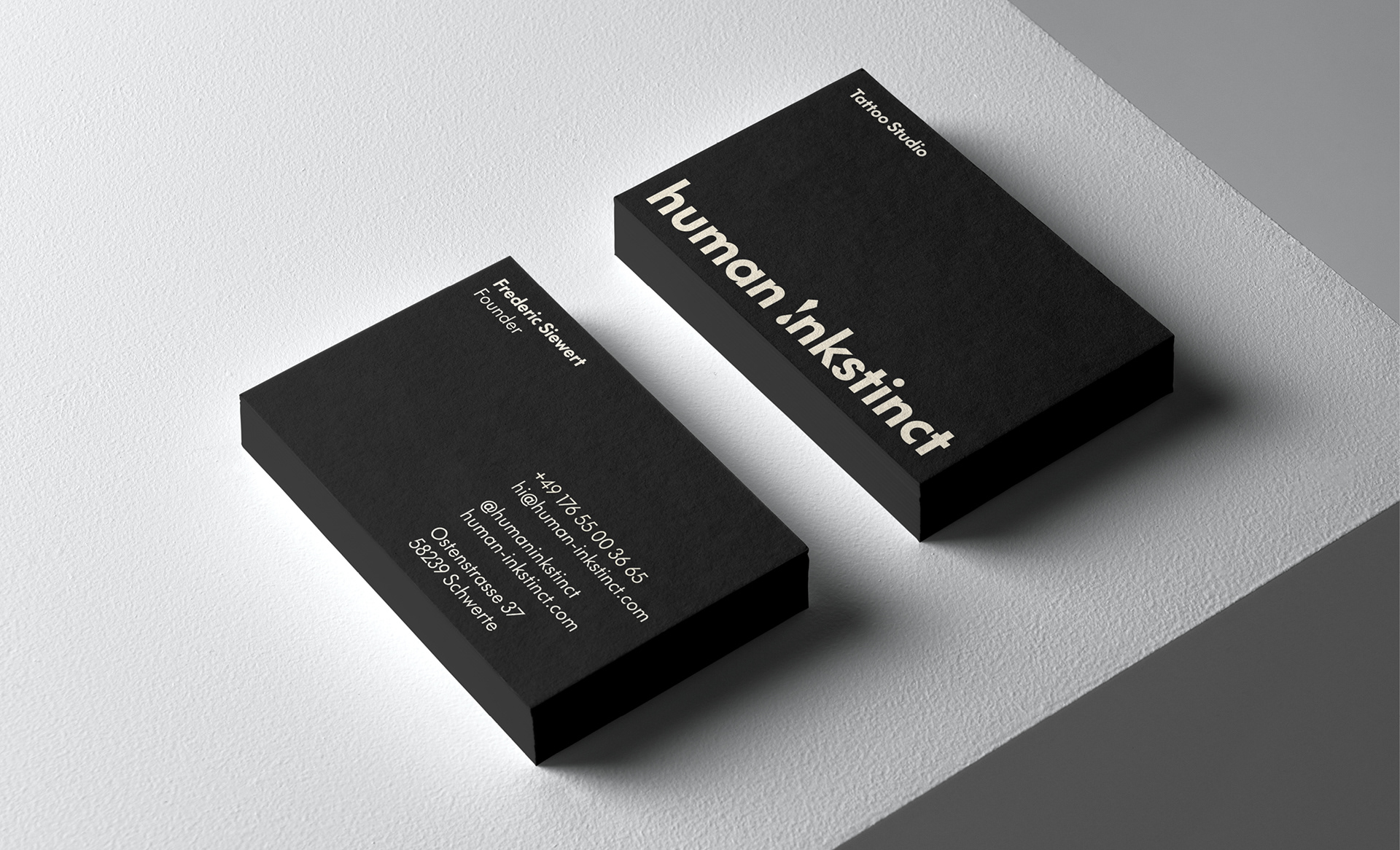 The visual identity for human inkstinct, a tattoo studio, embodies a luxurious, minimalist, and contemporary aesthetic.
